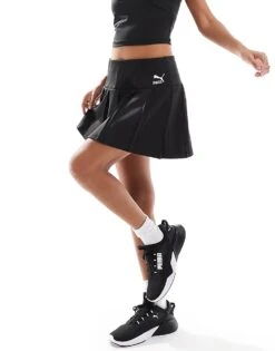 Puma Classics Pleated Mini Skirt In Black For Women